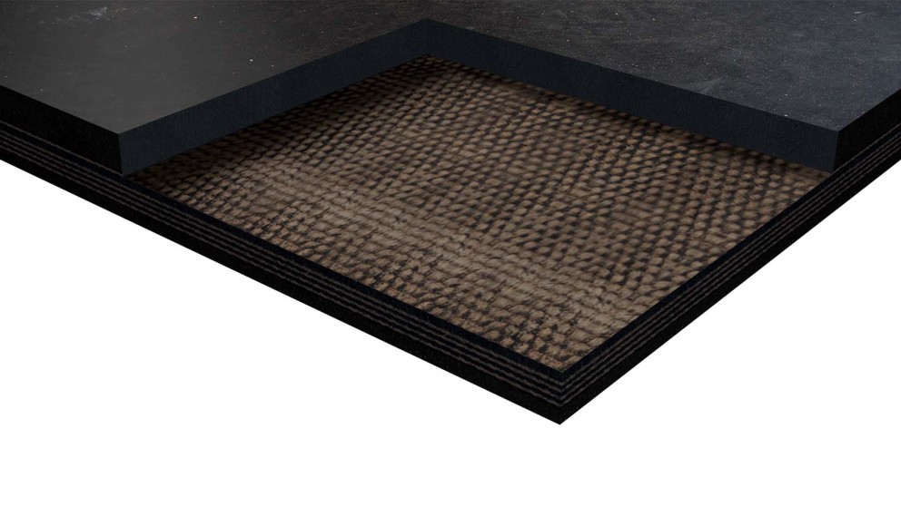 Kleemann Fördergurte sind mehrlagig aufgebaut, um den harten Anforderungen in der Materialaufbereitung gerecht zu werden. Die oberste Schicht ist als stark dimensionierte Gummideckplatte ausgeführt. Denn diese Tragseite hat direkten Materialkontakt und ist deshalb einem besonders hohen Verschleiß ausgesetzt.
