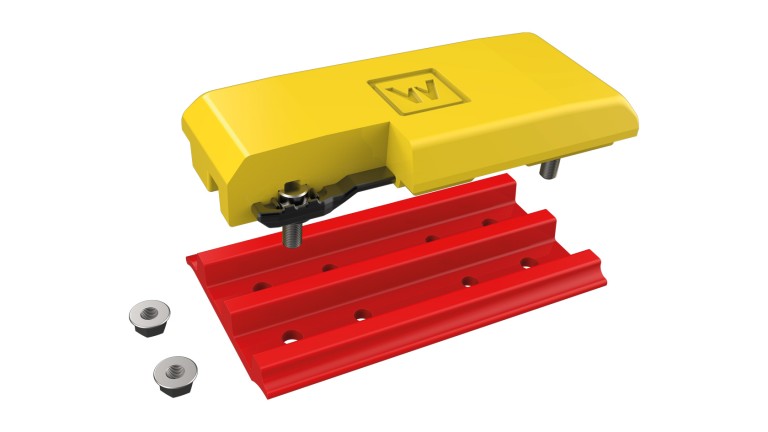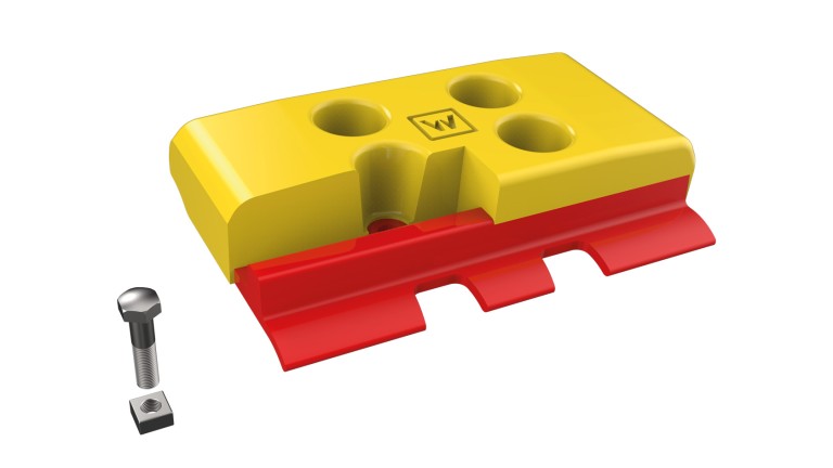 É fácil reconhecer os coxins da esteira originais WIRTGEN devido a sua combinação e cores distinta em amarelo e vermelho.
