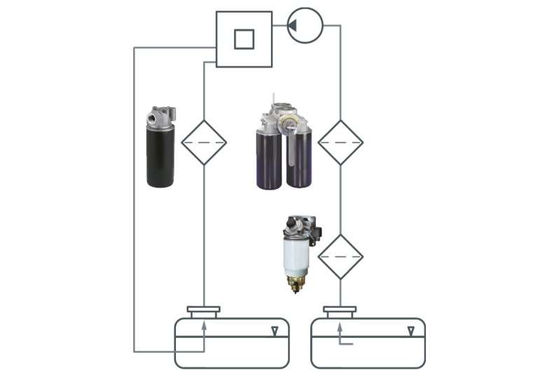 Yanmalı motorlar işletim güvenliği içerisinde hava, yağ ve yakıt ile çalışmaktadır. Bu üç madde için tümünün bir filtre sistemiyle donatılması gereken üç ayrı devridaim mevcuttur.