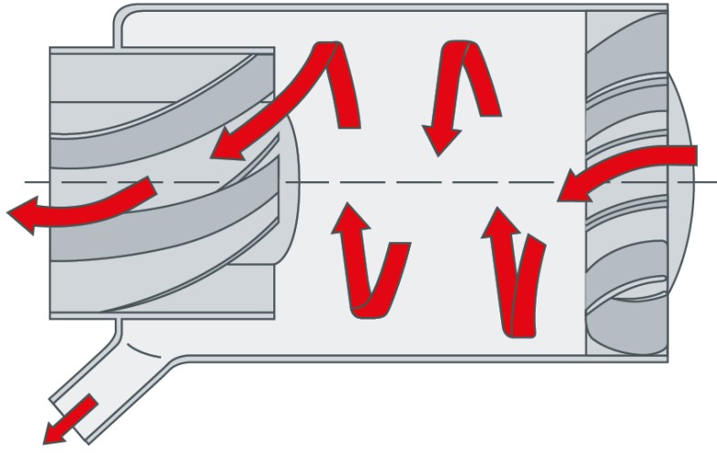 Yanmalı motorun emişiyle bir rotor (impreller) harekete geçirilir. İmprellerin yüksek devir sayısından dolayı kir partikülleri çok yüksek bir merkezkaç kuvvetine maruz kalır, bu nedenle en küçük partiküller bile gövdedeki açıklık üzerinden dışarıya atılır.